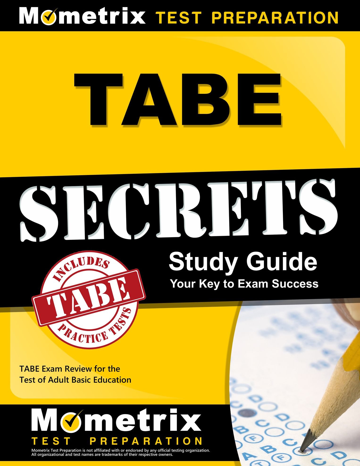 TABE Secrets helps you ace the Test of Adult Basic Education, without weeks and months of endless studying. Our comprehensive TABE Secrets study guide is written by our exam experts, who painstakingly researched every topic and concept that you need to know to ace your test. Our original research reveals specific weaknesses that you can exploit to increase your exam score more than you've ever imagined. TABE Secrets includes: The 5 Secret Keys to TABE Success: Time is Your Greatest Enemy, Guessing is Not Guesswork, Practice Smarter, Not Harder, Prepare, Don't Procrastinate, Test Yourself; A comprehensive Mathematics review including: The Easiest Math Review You'll Ever Read, Solving for Variables, Breezing Through Word Problems, Keeping Probability Simple, Using the Right Formulas, Graphing for Success, Racing Through Ratios, Understanding Line Plotting, Mastering Difficult Problems; A detailed English review including: Simplicity is Bliss, Recognizing Parallelism, Understanding Grammar Type, Keys to Using Punctuation, Beware of Added Phrases, Clearing Up Word Confusion, Comparative Methods, Nonessential Sections, Maintaining the Flow, Serial Mistakes, and much more...