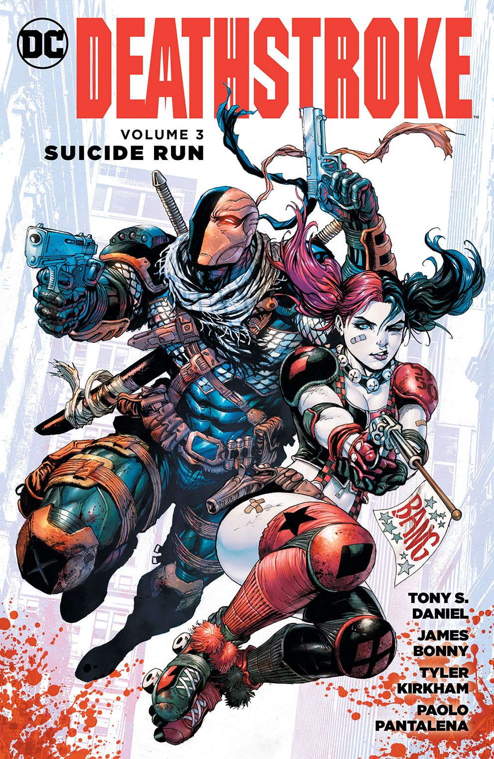 TAKEN Nobody defeats Deathstroke. Slade Wilson has killed a Titan, held his own against the God of War and gone punch for punch with Superman and lived to tell the tale. But someone has found the one chink in Deathstroke’s armor… Now his daughter, Rose, has gone missing, taken by none other than Harley Quinn. Harley intends to force Slade to make good on an old promise, and her ultimatum is simple: to find his daughter, he’ll have to kill Amanda Waller, head of the Suicide Squad and Harley’s jailor. But how far can anyone trust the unbalanced Harley? When Deathstroke’s intel pits him against everyone from Lex Luthor’s army of Bizarros to Red Hood, it’s clear that there’s more to this puzzle than meets the eye. Deathstroke wants answers, but more importantly, he wants his daughter back. And he’s not about to let anyone stand in his way! dWriters James Bonny (THE SAVAGE HAWKMAN) and Tony S. Daniel (DETECTIVE COMICS) and artists Tyler Kirkham (TEEN TITANS) and Paolo Pantalena (RED HOOD/ARSENAL) set Deathstroke on his most important mission yet in DEATHSTROKE VOL. 3: SUICIDE RUN! Collects issues #11-16.